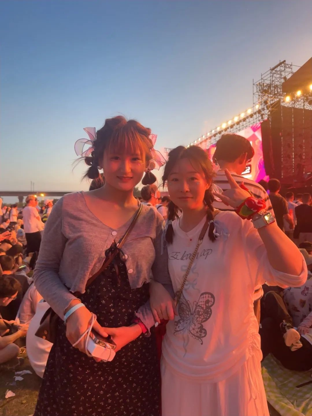单雯婕(左)、吴楠(右)现场合影。受访者供图据了解,仙人掌音乐节不仅有唱响“诗意与远方”的许巍,也有中国摇滚乐代表人物郑钧,还有国民歌手老狼、实力唱作人郭顶、中国内地民谣男歌手赵雷,以及万能青年旅店、痛仰乐队等摇滚乐队。