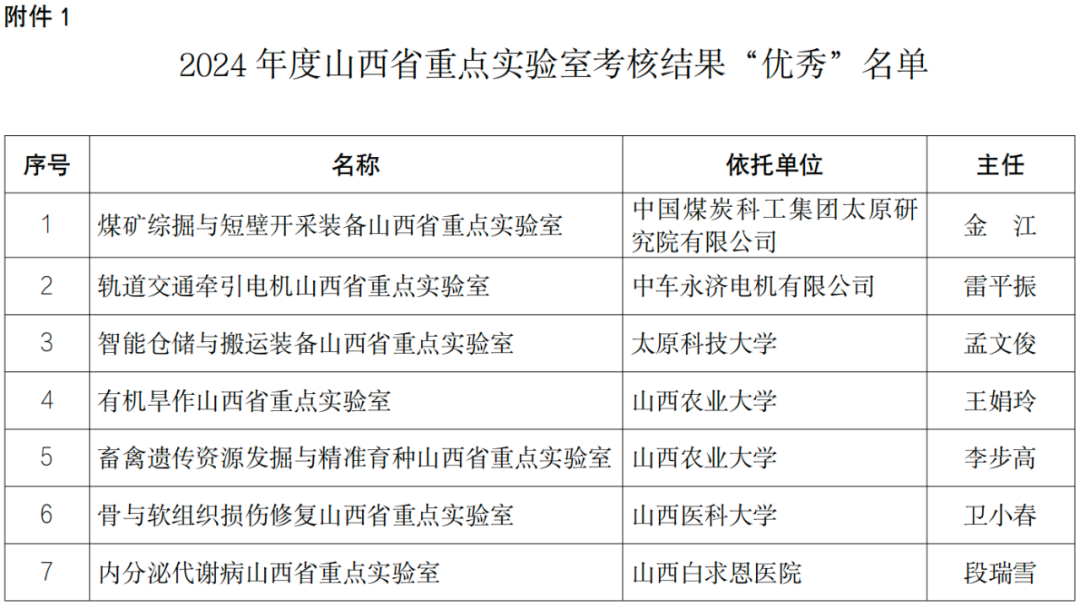 根据相关规定,经严格考核评估,“煤矿综掘与短壁开采装备山西省重点实验室”等15个省重点实验室,以及“山西省半导体深紫外技术创新中心”等14个省技术创新中心获评2024年度考核“优秀”。这些表现卓越的科研平台不仅在学术研究上成果丰硕,还在推动产业技术升级、培养高端科研人才等方面作出突出贡献。为了鼓励先进,我省决定对上述优秀单位给予建设经费支持,以助力其在未来科研工作中取得更大突破。