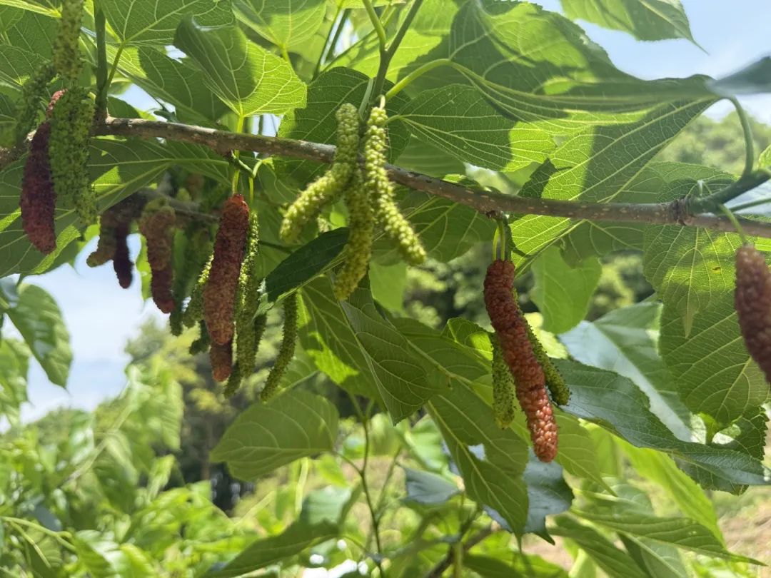 走进黄晶岭生态农业有限公司种植基地,或红或绿的台湾长果桑葚,宛如一串串翡翠珠帘,在绿叶的映衬下格外诱人,随手摘下一颗放入口中,轻轻一咬,清甜爆汁。