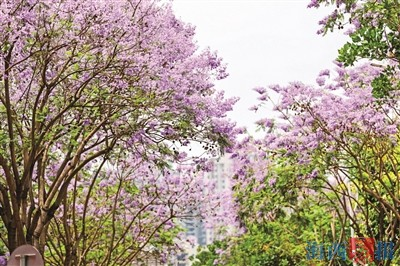 需要提醒的是,蓝花楹一般在4月至5月绽放,花期不长,感兴趣的朋友们可得抓紧时间观赏打卡。连日来,不少市民游客探寻蓝花楹的打卡点,并在微信朋友圈等线上平台分享。“往年,到官任大厦拍摄蓝花楹是不少人的选择。今年,西浦路上的蓝花楹景观效果也很好。”市民陈女士说。