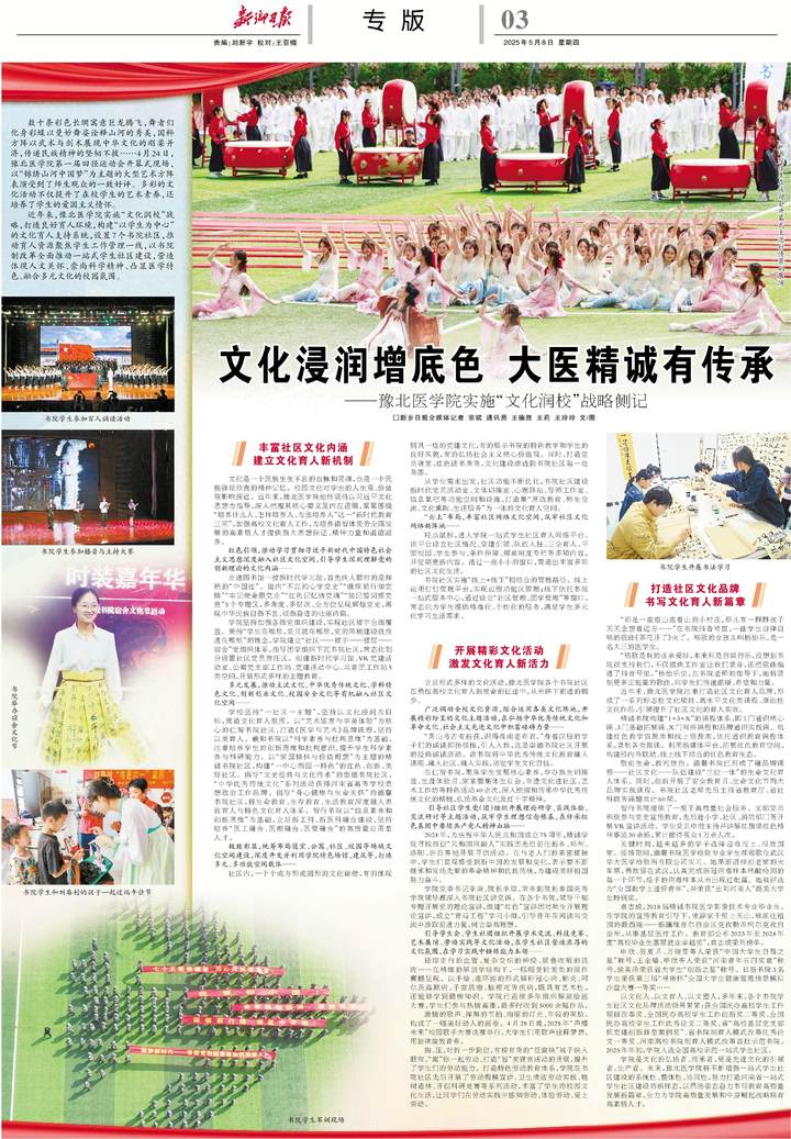 近年来,豫北医学院注重打造社区文化育人品牌,形成了一系列标志性文化项目、高水平文化类课程、原创性文化作品,引领提升了社区文化的育人实效。