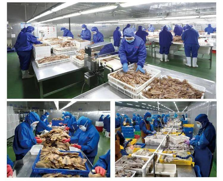 山东蓝润集团的鱿鱼加工车间内,处处展现着科技的力量。车间采用二氧化碳冷冻系统,引入整套日本原装先进调理设备,并配备全自动包装系统、先进的烘干设备以及冷库,构建起一条高效的流水线式加工工艺。在加工过程中,严格遵循食品安全标准,对温度和湿度进行精准调控,加工流程规范有序。在这里,现代化的加工设备与工人们熟练的操作相辅相成。鱿鱼被仔细处理,去除内脏、剥去外皮,确保每一片都干净卫生。