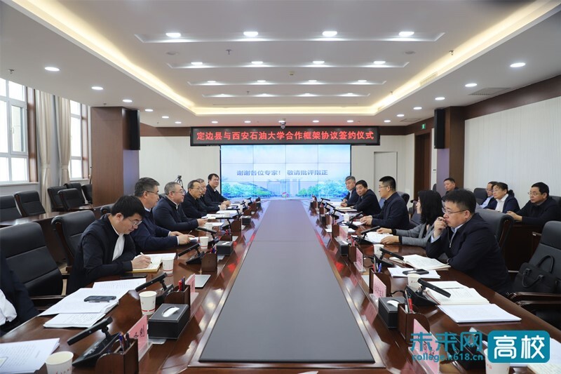 张君涛和党玉飞分别代表学校和定边县政府共同签署了《定边县人民政府与西安石油大学校企地合作框架协议》。协议明确了双方将通过组建西安石油大学定边油气研究院、建立科技小院、加强人才交流、开展课题研究、组建油气产业联盟、培育孵化中小微油服企业等方式,助力定边县油气上下游产业延链、补链、强链,推动石油天然气行业绿色、高效、可持续发展。