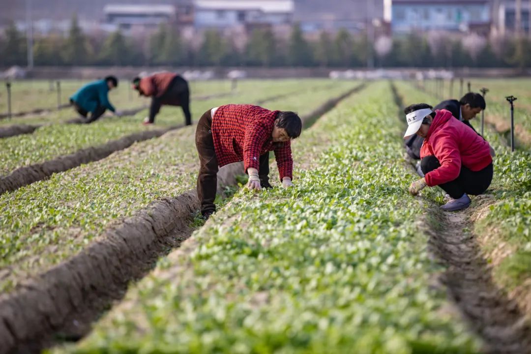 菜农们正在打理嫩绿叶菜。