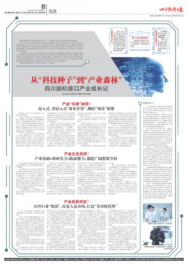 放眼四川脑机接口产业,更多“科技种子”正在萌发。