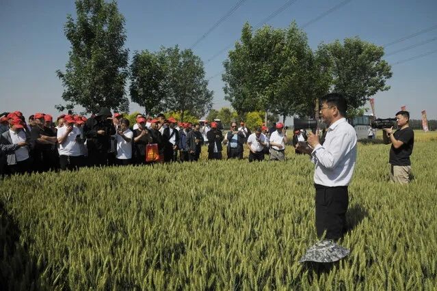 5月11日至12日,安徽、河南、江苏、陕西省的260余位种粮大户汇聚周口,观摩周麦37、周麦38小麦新品种的生长态势,聆听由河南农大教授、农业农村部小麦专家指导组顾问郭天财等专家带来的关于小麦后期管理的报告。(记者 付永奇)
