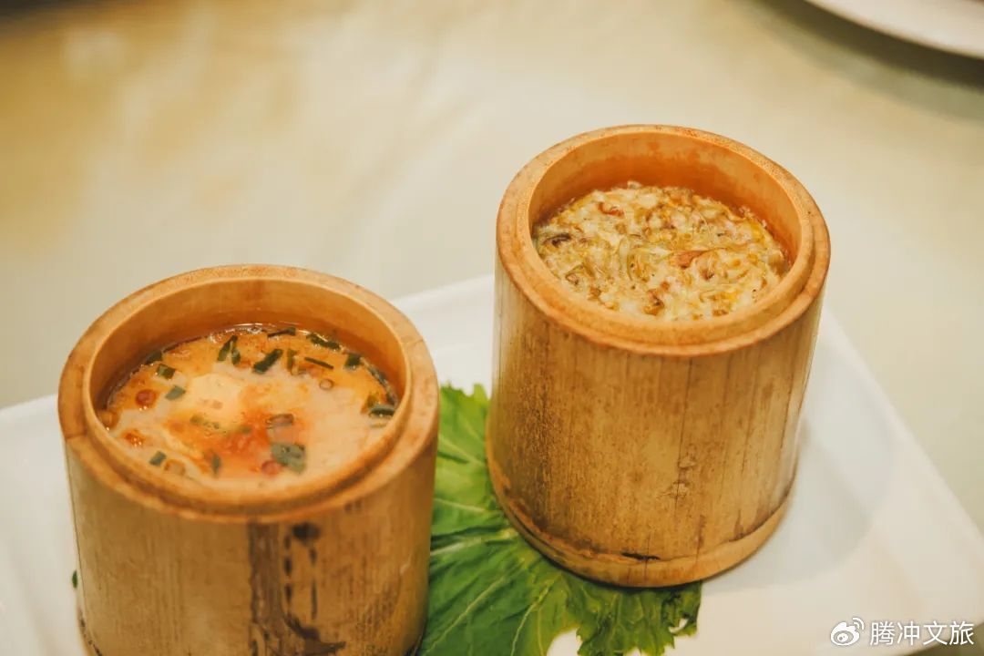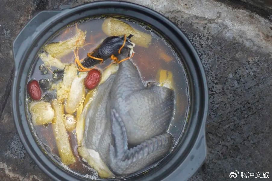 传统沙锅鸡搬进地热蒸笼,鸡肉与竹荪、虫草花等菌菇,加入大枣、枸杞在蒸汽中交融一个小时左右,汤汁澄黄如琥珀。热泉蒸汽的恒温淬炼,让鸡肉的鲜嫩与菌菇的鲜美完美融合,喝一口浑身都透着暖,是滇西食疗智慧的绝佳诠释。