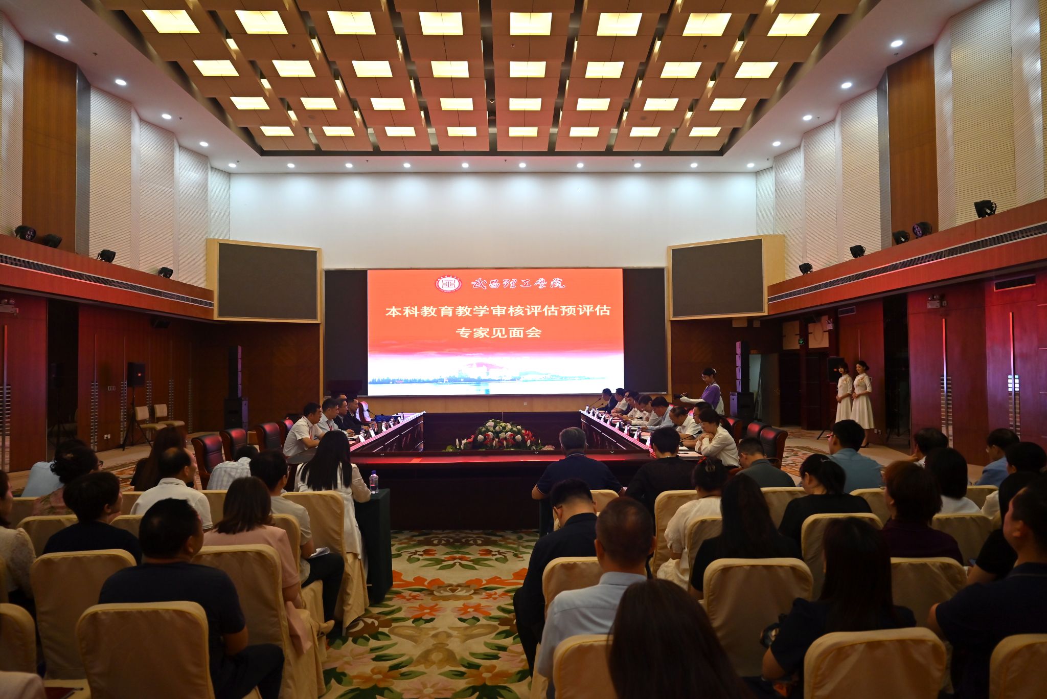 预评估期间,专家组认真审读了学校的“1+3+3”报告及《特色专业发展报告》、示范案例等评估报告,查看了学校《人才培养方案》《课程教学大纲》《教学管理规章制度汇编》等案头材料;听取了学校校长赵作斌教授做的《补充报告》;深度访谈学校领导9人次;访谈教学单位55人次;访谈职能部门20人次;听看课18门,抽阅9门课程的试卷210份,抽阅15个专业的毕业论文(设计)45份;召开了教师座谈会4场;走访了7个学院和单位,考察了成功素质展示厅、AI人工智能展厅、VR实训室等场地,基本按照正式评估流程,实现了考察内容全覆盖。