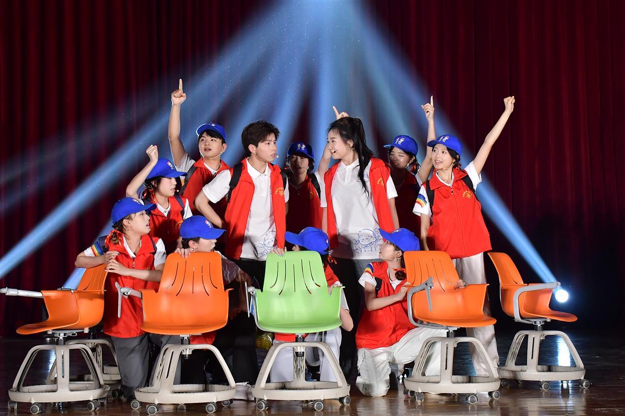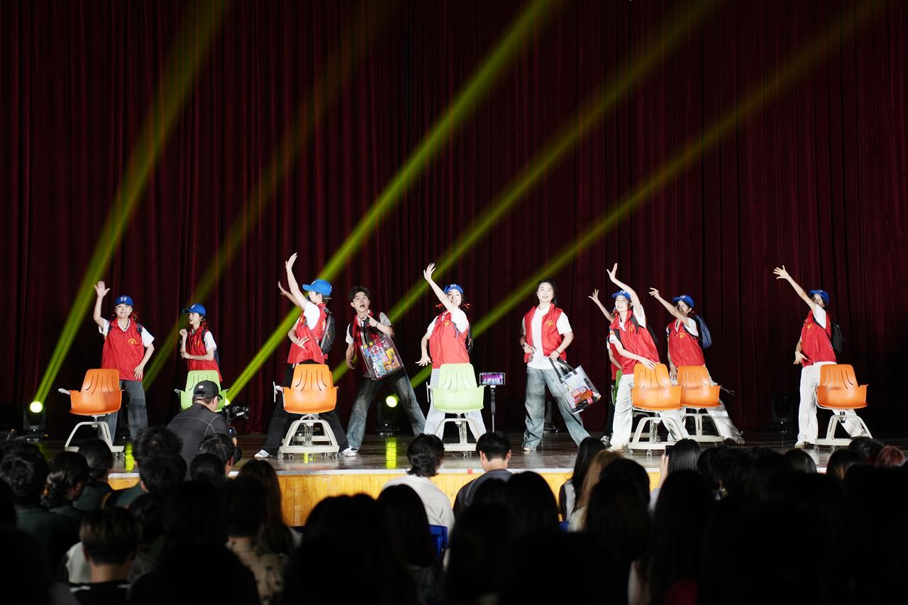 该剧巧妙融合舞台剧与音乐剧表演形式,将志愿服务故事融入舞蹈、音乐、对话与独白之中,由徐强、杨扬等11名学生倾情演绎。从剧本创作到正式演出,耗时近两个月,5000字的台词创作,每一次5小时以上的高强度训练,才有了这22分钟的精彩呈现。