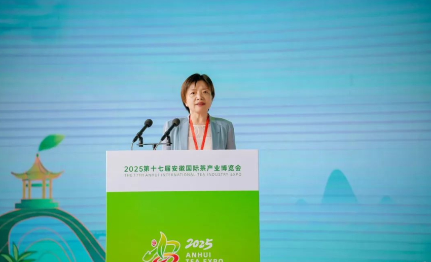 中共太湖县委副书记、县长吴海宏致辞。她指出,太湖高海拔、低纬度、多云雾,是天然茶仓。目前全县茶园面积稳定在13.6万亩,茶叶综合产值超17亿元,拥有“天华谷尖”“天华云雾”“天华红”三个区域公用品牌,天华牛镇黄茶、天华白茶亦声名鹊起。她表示,今天的推介会,太湖县满怀“三个愿景”。一愿:政策润泽。诚望省、市领导持续关心指导,以政策活水滋养产业根基。二愿:乡情为脉。祈盼皖地太湖贤达凝聚桑梓情谊,汇智聚力助推家乡茶品牌更响、市场更广。三愿:匠心共铸。恭迎四海客商来太湖投资、共谋发展。