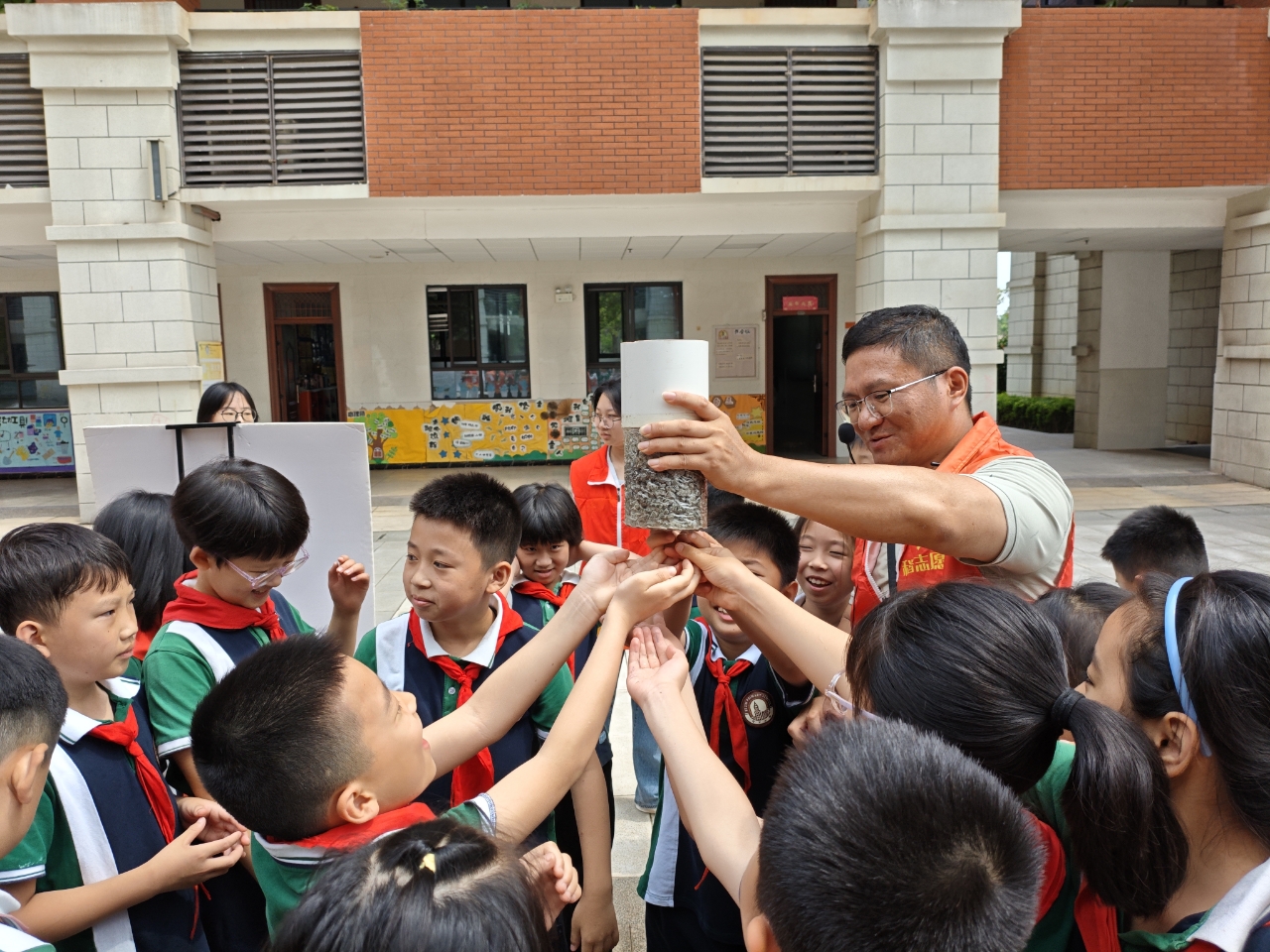在第二十五个全国科技活动周和第九个全国科技工作者日到来之际,为激发青少年创新创造热情,5月19日,湖南省新型建筑材料科普基地联合化学与环境科普基地走进可津小学,以“探秘材料化学,筑梦绿色未来”为主题,开展了一场融合科技性、趣味性与实践性的科普活动。活动由湖南省新型建筑材料科普基地负责人、湖南工学院化学与环境工程学院院长娄晓明教授带队,10余名科普志愿者通过实物展示、实验互动、现场讲解等形式,吸引了众多学生参与,现场氛围热烈。