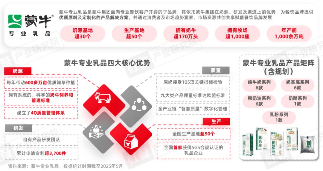 比如我国乳制品龙头企业蒙牛,近年来推出了面向烘焙等餐饮赛道的子品牌蒙牛专业乳品,围绕纯牛奶、稀奶油、奶基底、奶酪、乳粉产品布局烘焙专用原料,并通过提供产品应用解决方案,助力餐饮品牌提升出品效率与品质。