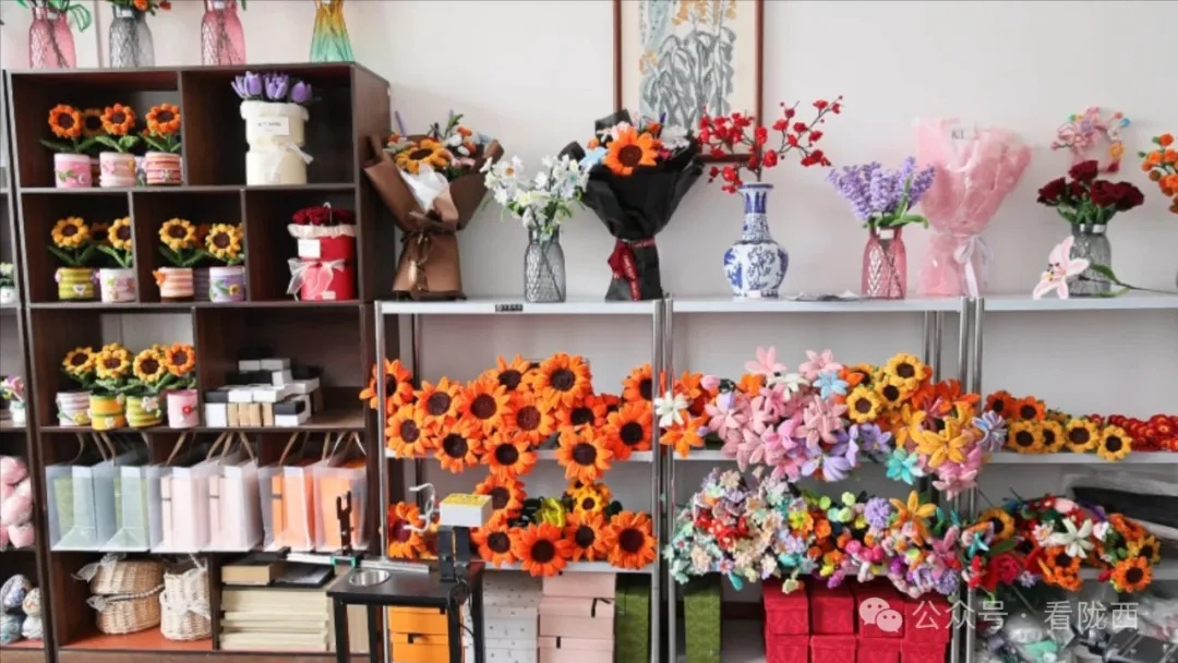 采访当日,记者在陇西县华荣超市残疾人“爱心屋”看到,各式各样精美的手工艺品整齐陈列,吸引了过往人群驻足,顾客王彩霞精心挑选着布艺花束,精美的手工产品,让王彩霞感叹不已。