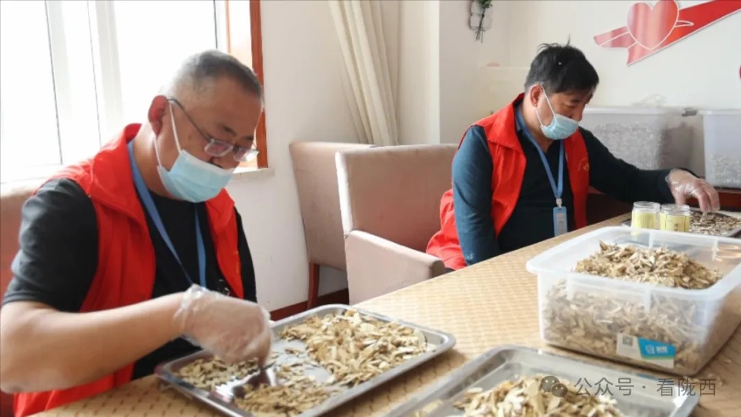 陇西县阳光康复中心管理员李向东:咱们就业工坊一里面带的是咱们的中药材,黄芪分拣、称重装瓶,咱们的森保药业公司给咱们提供这个支持。咱们就业工坊二就是带着做些手工,对他们的动手能力和他们心理的治疗康复可能更有效果一点。