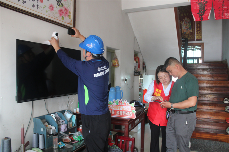 活动中,双方党组织负责人签署《“数智赋能·乡村共治”共建合作协议》,标志着政企协同的智慧乡村治理体系正式建立。现场同步启动“银晖守望”助老工程,中国移动智慧家庭工程师团队携带专业设备,为村内独居老人免费安装智能居家监控系统,通过现场模拟演示远程监护场景,生动展现“云端守护”如何实现24小时安全预警。