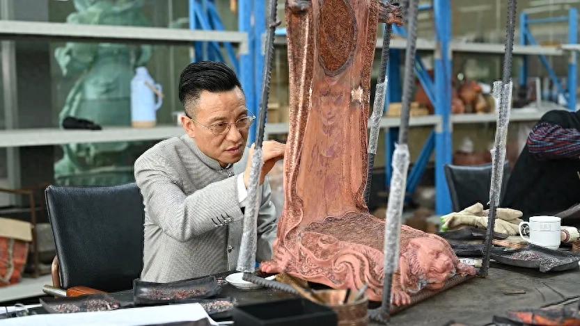 该公司负责人说,此次展出的作品亮点主要有三方面。一是技艺维度,成功复活了失传数百年的铸胎掐丝珐琅工艺,并独创矿物釉料配方,使珐琅制品能够耐高温达 1200℃,拓展了珐琅艺术的创作边界,使作品在色彩表现、质感呈现等方面达到新的高度;二是科技赋能,我们采用 3D 建模预演青铜雕塑结构应力,确保大型作品零误差铸造。借助现代科技的力量,将传统青铜雕塑工艺与前沿科技相结合,大大提升了作品的制作精度与效率,减少了因误差导致的损失,使复杂的青铜雕塑作品能够完美呈现设计构思;三是文化表达,如《百鸟朝凤》屏风以传统纹样重构生态保护叙事,珐琅层厚度精确至 0.2 毫米。在这一作品中,匠人们运用传统百鸟朝凤纹样,赋予其新的文化内涵,将其与生态保护主题相结合,传递出人与自然和谐共生的理念。同时,在制作过程中对珐琅层厚度进行精确控制,使作品成为文化传承与表达的优秀载体。