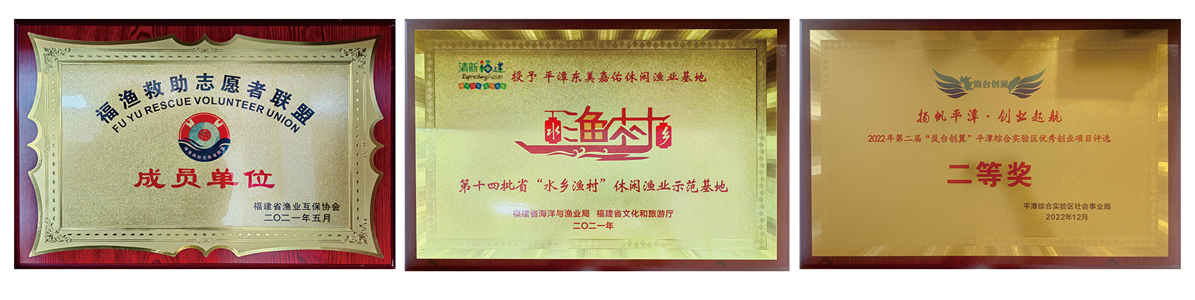2021年平潭东美嘉佑休闲渔业基地获评为第十四批“水乡渔村”休闲渔业示范基地;2022年获得第二届“岚台创翼”平潭综合实验区优秀创业项目评选二等奖;2024年当选福建省渔业行业协会休闲渔业分会第二届理事单位。同时还是平潭综合实验区诚信促进会副会长单位;福建救助志愿者联盟成员单位。平潭综合实验区嘉佑渔业开发有限公司董事长高传琳于2022年当选平潭综合实验区农渔业发展协会执行会长兼休闲渔业专业委员会主任委员;平潭综合实验区高氏历史文化保护中心常务理事。
