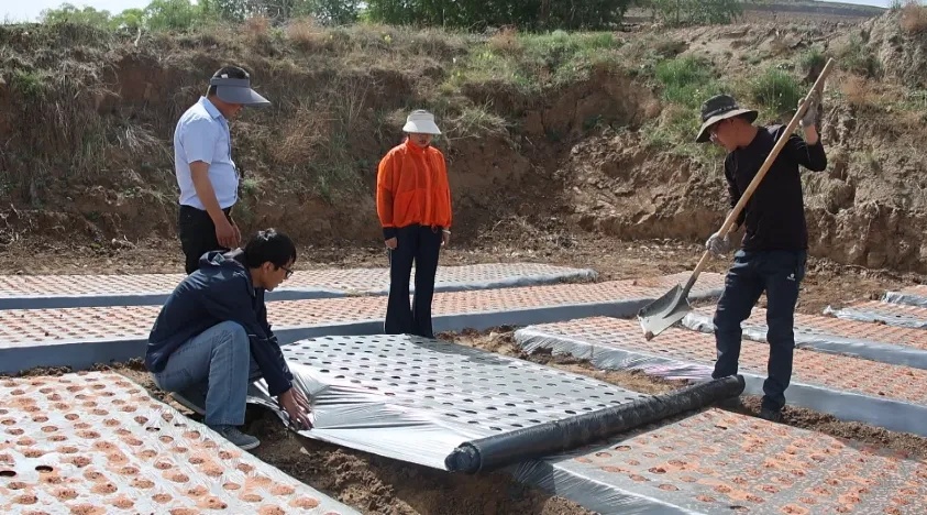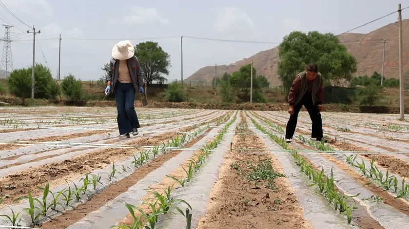 在首阳镇万亩中药材种植基地,农户禄万斌正在抓紧时间给自家的黄芪地覆膜,这场及时雨的到来,让他重拾信心,干劲十足。