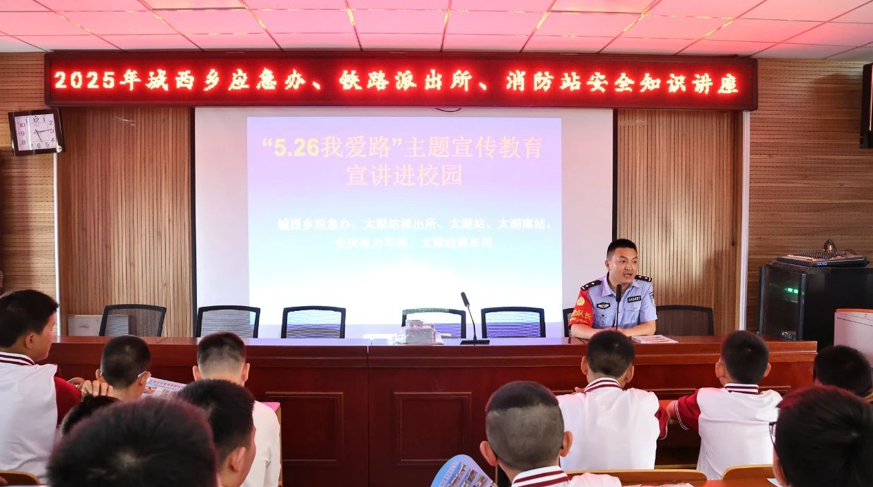 活动中,太湖县太湖站派出所民警走进城西初中,通过案例讲解、互动问答、视频展示等形式,围绕铁路安全、交通法规、未成年人保护等主题展开宣讲。宣讲中以真实案例为切入点,向学生普及《铁路安全管理条例》。