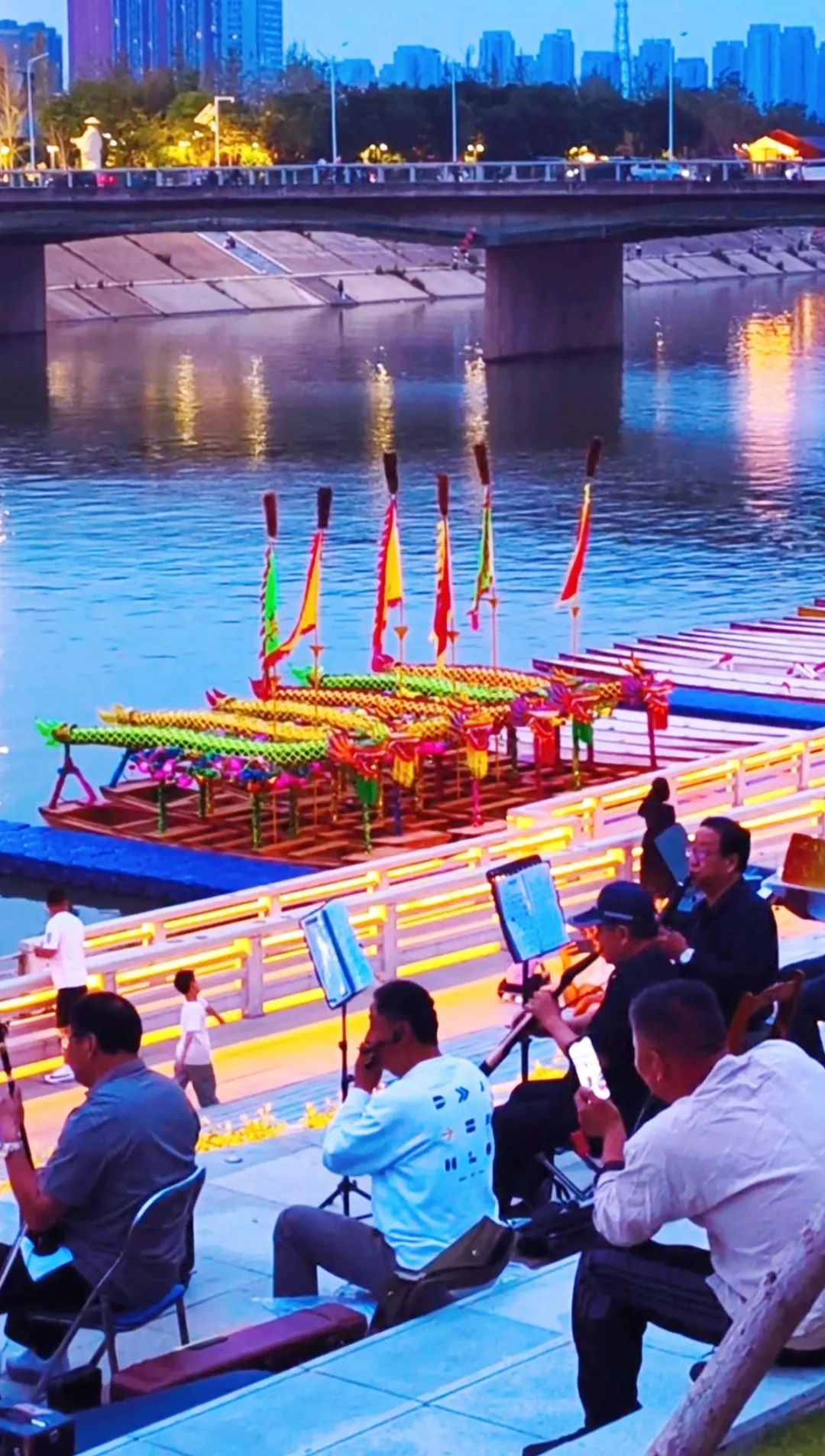 市民观龙舟、赏夜景。