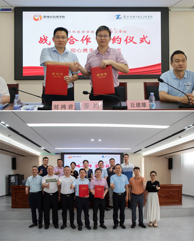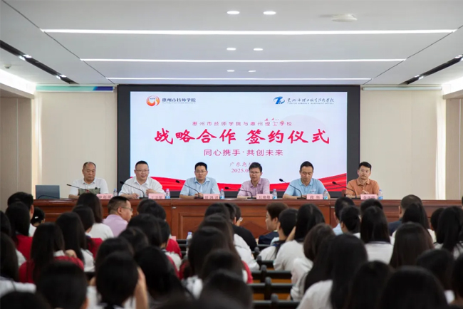 惠州市技师学院是国家级高技能人才培训基地、国家级重点技工院校、国家中等职业教育改革发展示范学校、广东省高技能人才实训基地、广东省第二批10所高水平技师学院创建单位之一,有着先进的办学理念、深厚的办学经验以及精湛的专业技术。惠州市理工职业技术学校近年来在全市中职学校中异军突起,创新意识浓厚,综合实力显著提升,师生精神面貌焕然一新,备受社会关注和家长、用人单位好评。此次合作,将重点探索技师学院与中职学校联合培养人才模式,为粤港澳大湾区产业发展输送高素质技术技能人才。此次签约,不仅为两校协同发展奠定基础,也为区域职业教育融合发展、提质增效提供了创新范本,为惠州职业教育发展注入了新的活力。(撰稿:凌利)