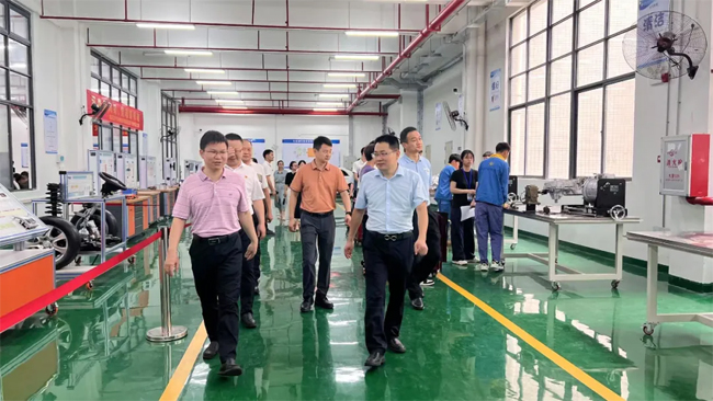 上午10时,惠州市技师学院考察团抵达惠州市理工职业技术学校后,参观了学校校史馆、一站式服务中心、文体中心、各专业实训室、招生接待大厅等,学校刘鸿君校长等陪同考察并作讲解。