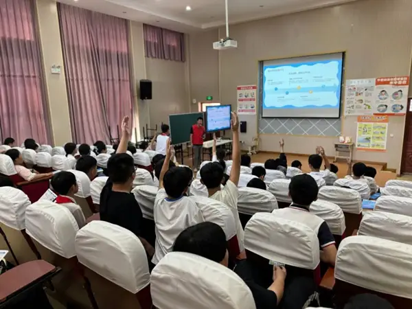 活动特别设置了“安全知识大闯关”游戏环节。市委平安办创新将防溺水知识融入飞行棋地贴,学生们通过玩游戏、答问题,识别危险水域,掌握急救要领。最后,全体学生积极响应,争先恐后地跑上讲台,跟着旋律学唱市委平安办和市教育局共同改编的防溺水歌曲《大王叫我来巡山》。朗朗的歌声在教室里久久回荡,氛围感十足。这种寓教于乐的方式极大调动了学生的参与热情,现场发放的《防溺水安全手册》和卡通版急救指南也深受欢迎。