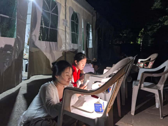 演出当日,武昌理工学院参演师生凌晨 3 点便抵达现场。他们争分夺秒,深知每一次的彩排、每一个细节的处理都关乎着演出的最终效果,容不得半点马虎。带队老师反复强调:“唯有做到尽善尽美,方能赢得最终的掌声!”在排练现场,演员们以整齐的站姿、激昂的情绪和精准的节奏,赢得了总负责人高度称赞:“武昌理工学院的演员专业又团结,把作品演绎得十分到位,是大家的榜样!”听到表扬,大家既自豪又振奋,更坚定了正式演出的信心。