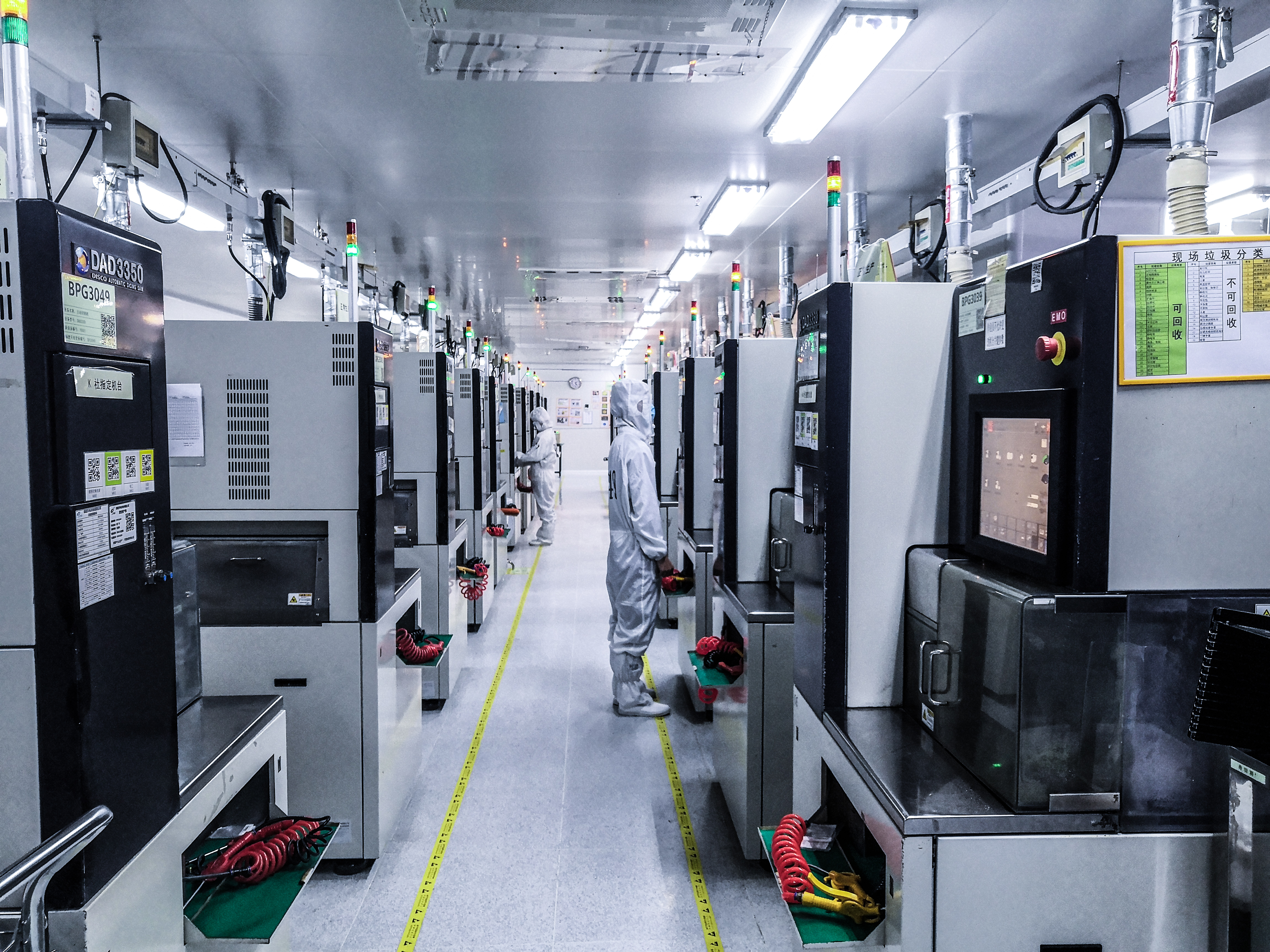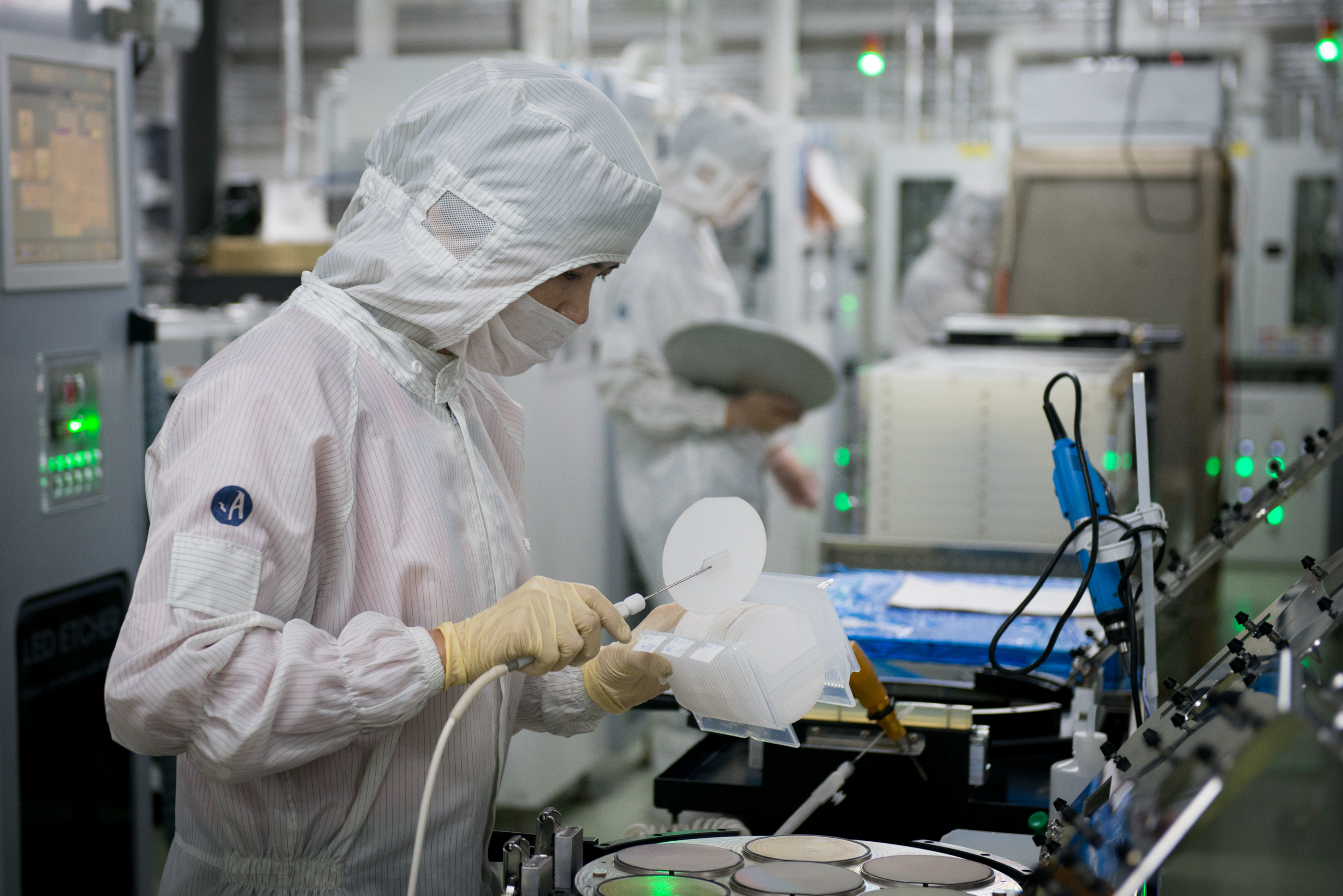 在福建晶安光电有限公司车间里,工作人员正在进行晶圆表面图形蚀刻工作。(安溪县工信商局供图)