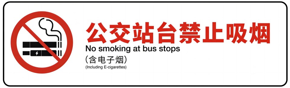 禁止吸烟警示语:禁止吸烟(含电子烟)(NO SMOKING<Includ-ing E-cigarettes>)或本区域全面禁止吸烟。