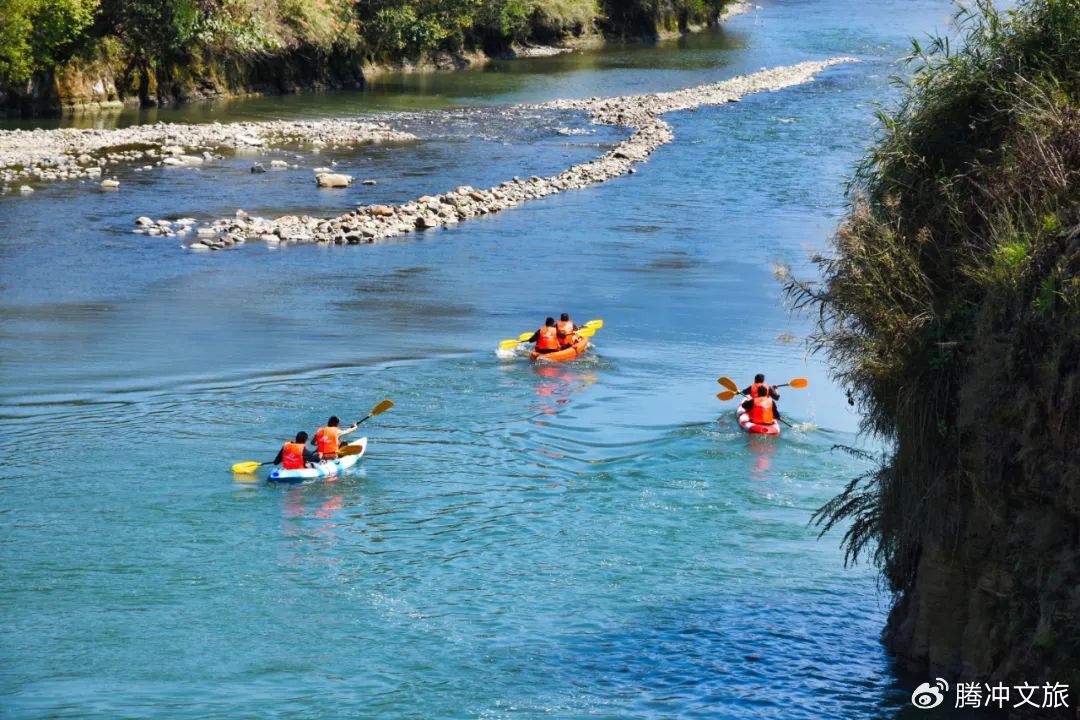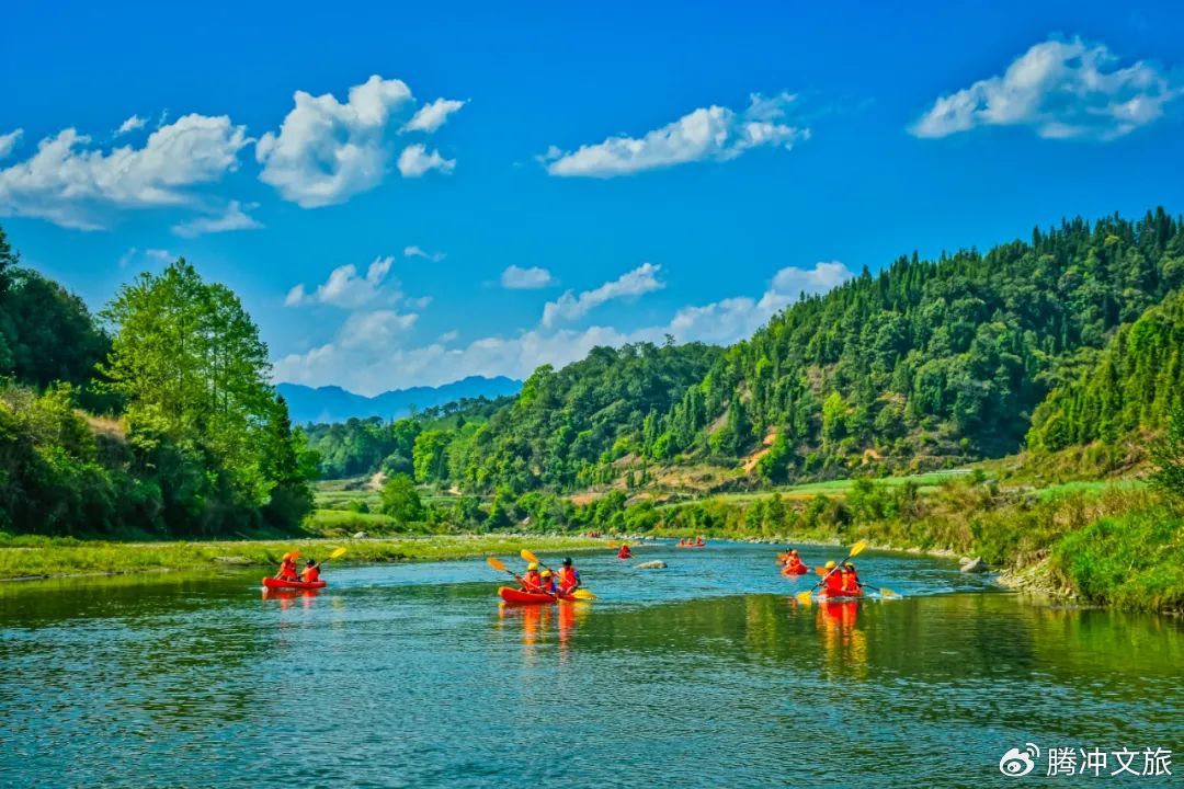 龙川江畔,峰回路转,好景连连。6月的龙川江水势适中,既不会因旱季而平缓无趣,也不会因雨季而湍急危险,正是漂流的黄金时节。全长5.2公里的刺激漂流,带你穿行在碧水青山间,随着橡皮艇在清澈江水中起伏,两岸青山如黛,绿意盎然!江畔的田园风光和古朴村落,感受腾冲乡村的宁静与质朴。