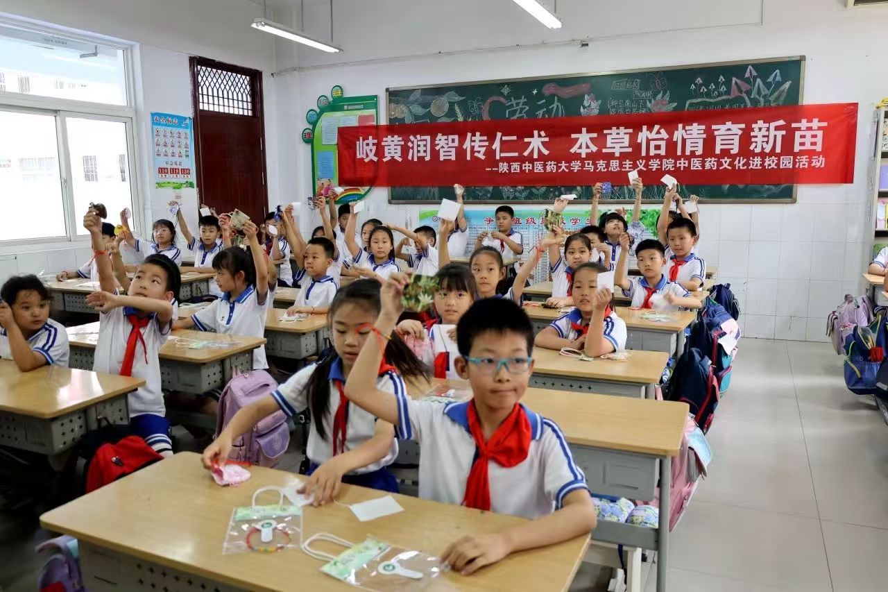 马克思主义学院联合咸阳市秦都区丝路花城小学、咸阳渭城中学、永寿县监军中学,开展“岐黄润智传仁术,本草怡情育新苗”中医药文化赋能大中小学思政教育一体化实践活动。青年教师以端午习俗为切入点,生动讲解中医药养生智慧。基础医学院、针灸推拿学院教师现场演示耳穴贴压、艾条灸法,引导中小学生“零距离”感受中医魅力,推进大中小学思想政治教育一体化建设。