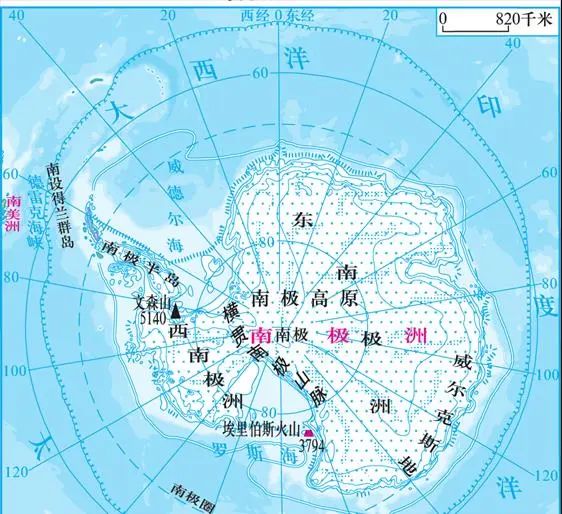 图7 以横贯南极山脉为分界线,靠近印度洋部分为东南极,靠近太平洋部分为西南极