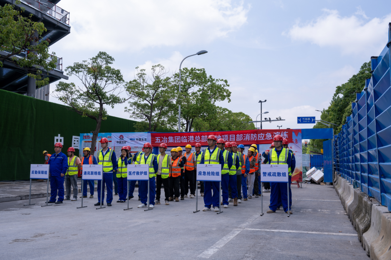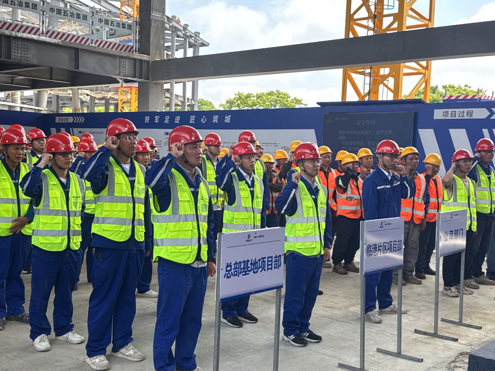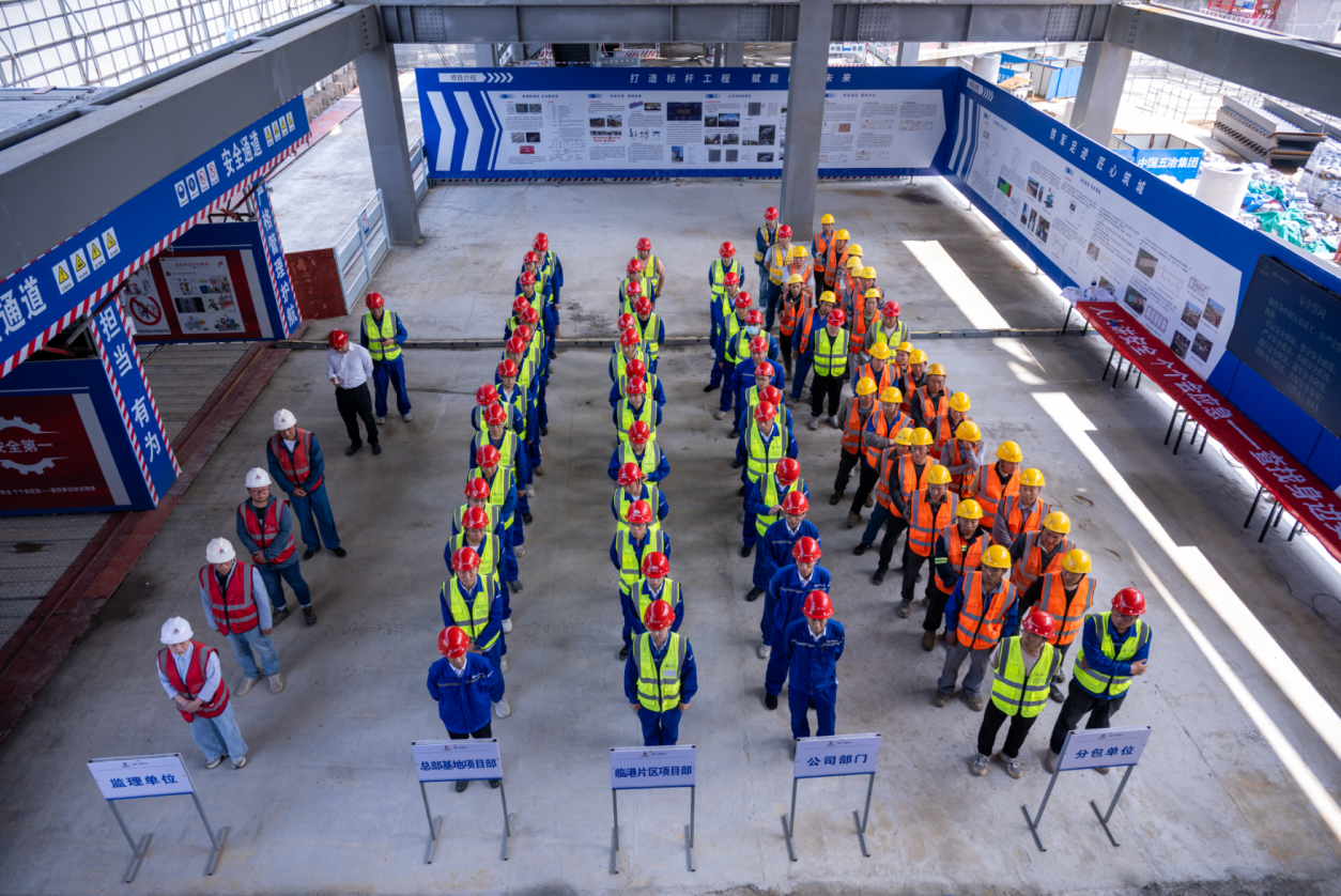 2025年6月3日上午10时,中国五冶集团上海公司在临港总部基地项目举行2025年“安全月”活动启动仪式,以“人人讲安全、个个会应急——查找身边安全隐患”为主题,凝聚建设、监理、施工等单位代表共筑安全防线。临港总部基地项目建设单位负责人胡勇华、监理单位项目总监袁发英、上海公司副总经理刁腾达、总工程师胡成斌出席活动,现场全员身着工装、佩戴安全帽,以饱满姿态投身活动。