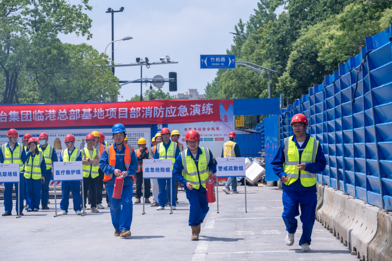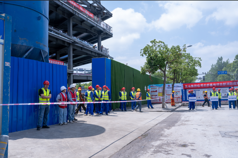 上午10时30分,消防应急演练模拟突发火情,项目应急指挥体系高效联动,信息通报、疏散引导、初期扑救及伤员转运等环节有序推进,专业流程让观摩人员深度掌握“会应急”实操要领。