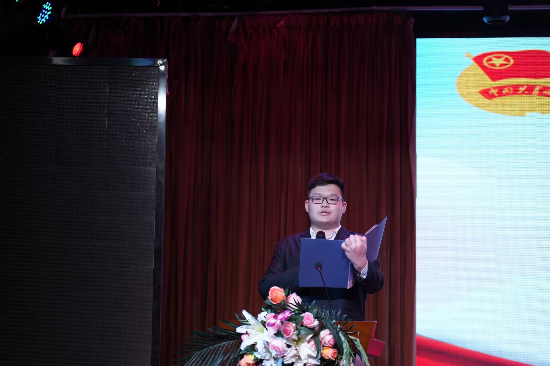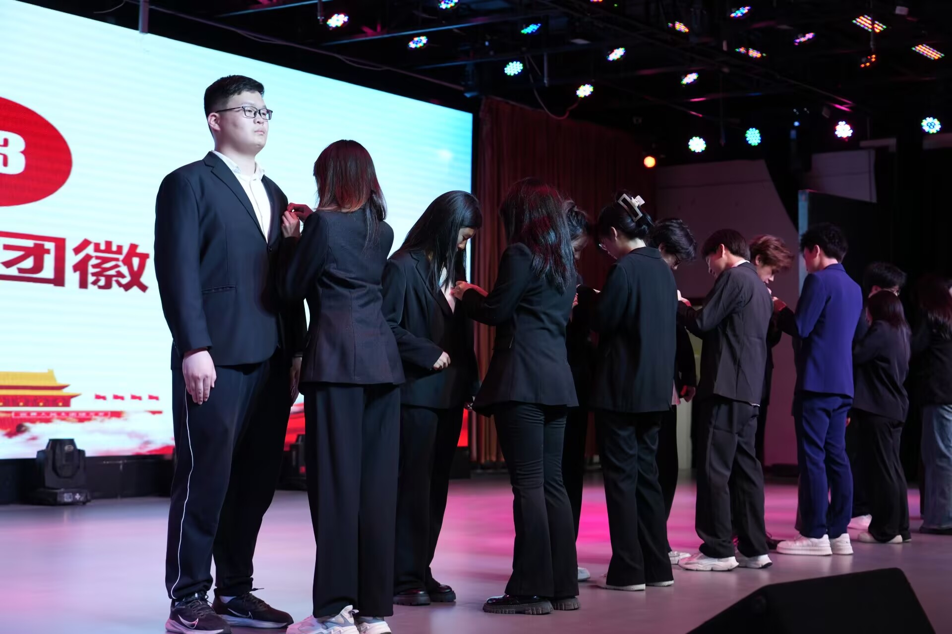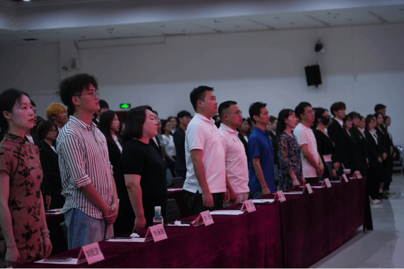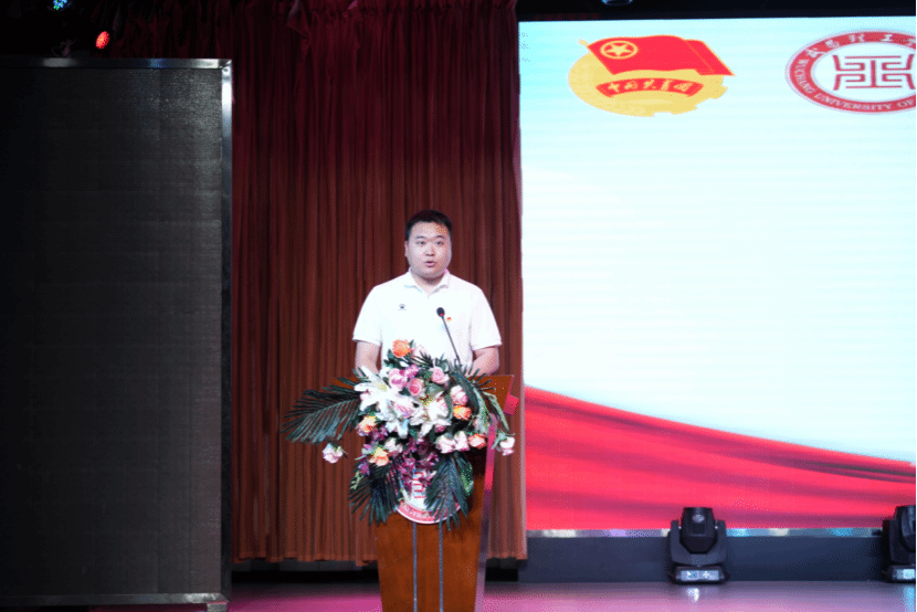 此外,各学院团委学生副书记为新团员代表佩戴团徽。新团员代表董俊逸在入团宣誓后上台发言,他表示:“今天是我们青春旅程中一个新的起点,它象征着一份沉甸甸的责任和使命,加入共青团不仅是身份的转变,更是思想和行动的一次提升,我们要更加努力地学习,服务他人,为自己的人生目标、 为社会的进步、为国家的未来贡献一份力量。”