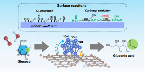 生物质选择性氧化是生物精炼和可再生化学品生产的关键步骤,但其多官能团结构常导致反应选择性差、依赖高成本氧化剂等问题。团队在《美国国家科学院院刊》(PNAS)发表的研究成果“Revealing OH species in situ generated on low-valence Cu sites for selective carbonyl oxidation”,为解决上述挑战提供了核心理论与技术支撑。该研究聚焦生物质分子(如葡萄糖)选择性氧化的核心挑战,提出了一种基于低价态铜(Cu0/Cu+)位点原位生成羟基自由基(*OHads)的创新催化策略,为绿色化学合成和生物质资源高值化利用提供了绿色、高效、可持续的解决方案。