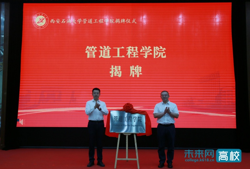 会上,杨立龙,常江共同为“西安石油大学管道工程学院”揭牌。