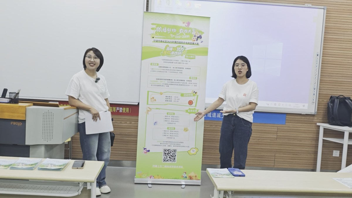 活动现场发布了奉化区2025年第四届助农电商直播大赛的招募令,同学们可以通过“实习+比赛”的形式,在今年暑期得到实践锻炼的机会。