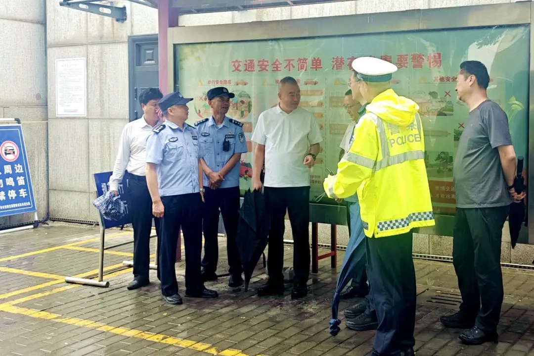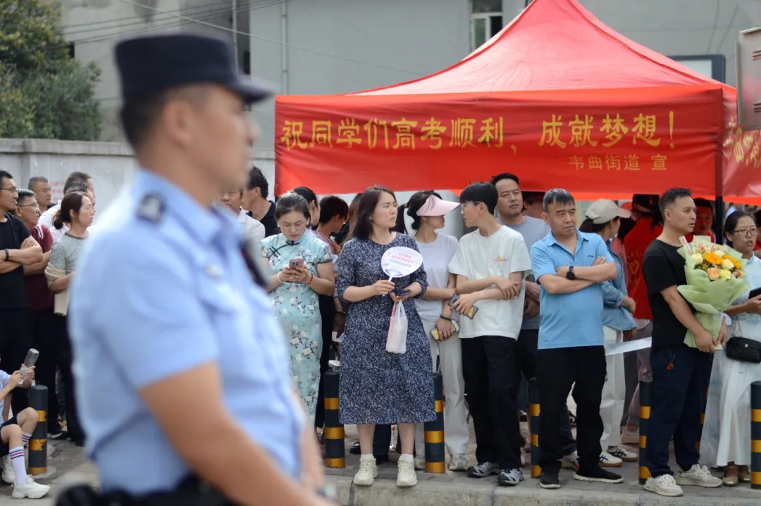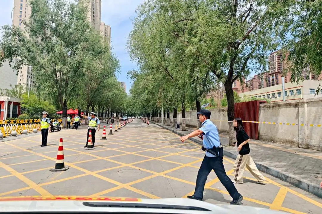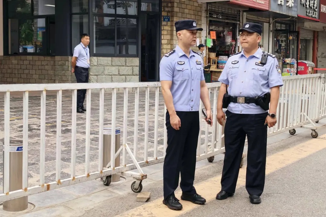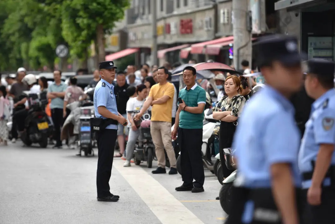 执勤期间的将于和高温天气,对执勤的民辅警是巨大的考验。雨水溅湿裤腿,汗水浸透警服,但全体执勤警力身姿挺拔,目光如炬,默默坚守在各自岗位上,成为考场外一道让人安心的风景线。