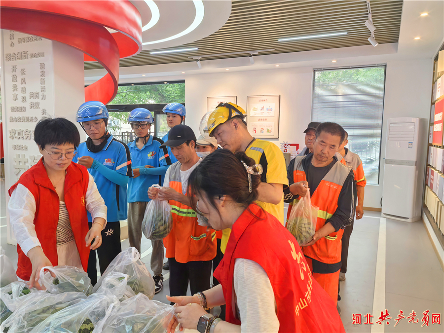 河北共产党员网讯(刘丽丽)近日,石家庄市长安区中山东路街道党工委聚焦新业态新就业群体现实需求,在长安区新就业群体党群服务中心精心策划开展了“清凉入‘新’ 关爱同行”活动,为炎炎夏日里奔波的环卫工人、外卖骑手、快递员发放降暑西瓜,为他们送上夏日里的一抹清凉。