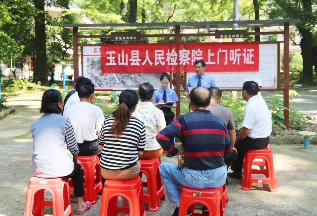 5月27日,江西省玉山县检察院检察干警前往岩瑞镇进行“上门听证+释法说理+送法入村”活动,与村民面对面交流。