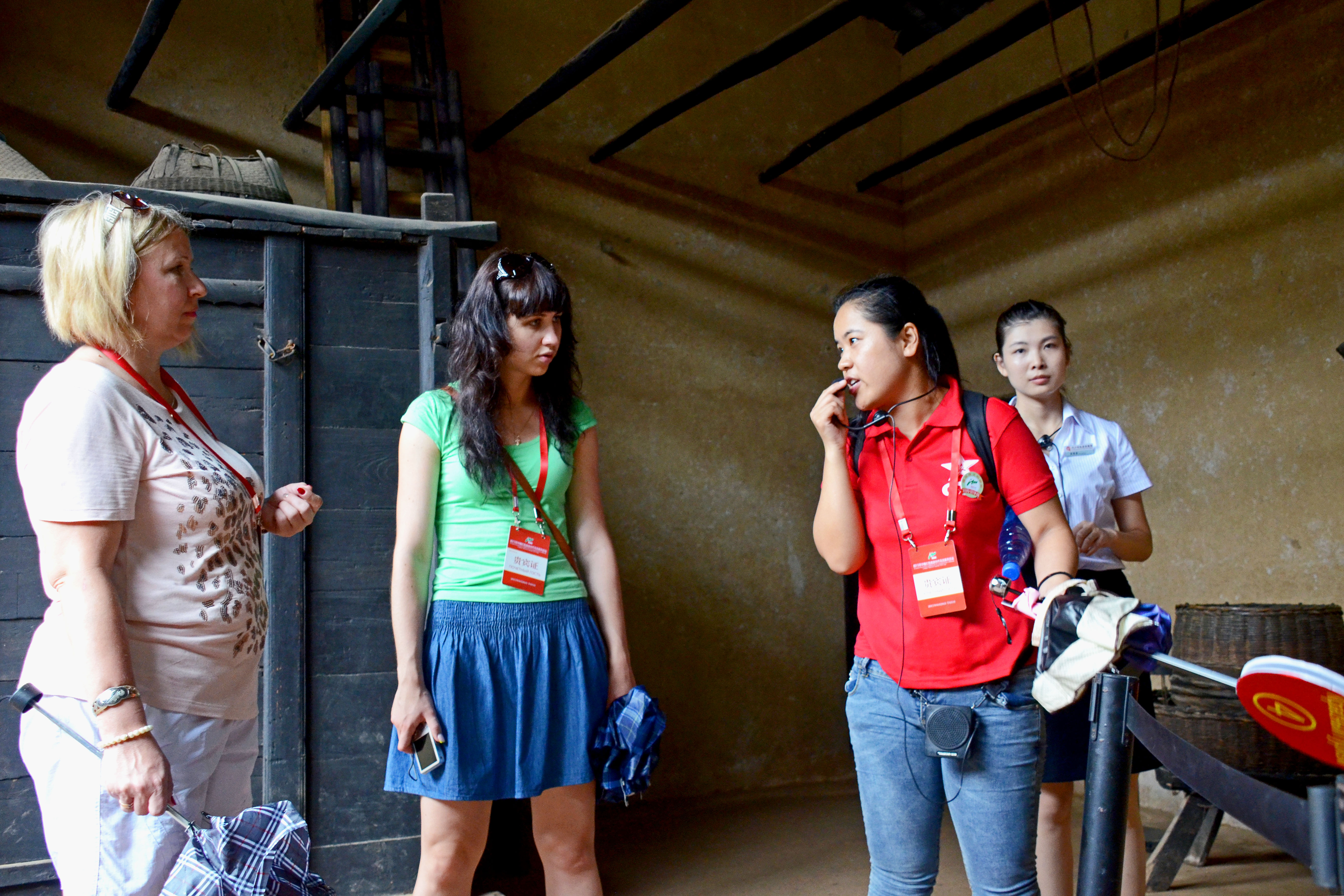 导游在长沙刘少奇故里景区为俄罗斯游客讲解