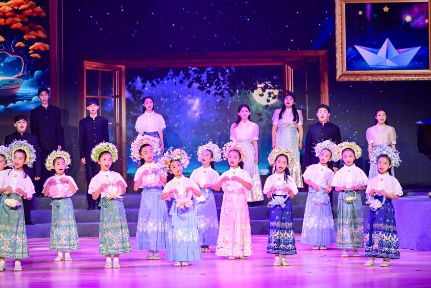 走在厦门市音乐学校的校园里,美育无处不在。这边传来悠扬的竹笛声,那边是孩子们展示自己借力AI或者学习传统非遗技术或美术技巧等方式在老师帮助下完成的各类作品……