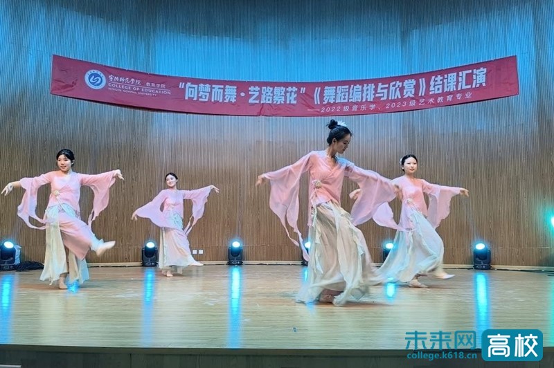 6月10日的舞蹈汇演则以“向梦而舞,艺路繁花”为题,藏族舞《雪域》的豪迈、现代舞《独萤》的哲思、蒙古舞《篝火》的热情,共同绘就一幅多元艺术画卷。当全体演员在《纪念》的旋律中谢幕时,舞蹈课程艺术实践落下温馨帷幕。