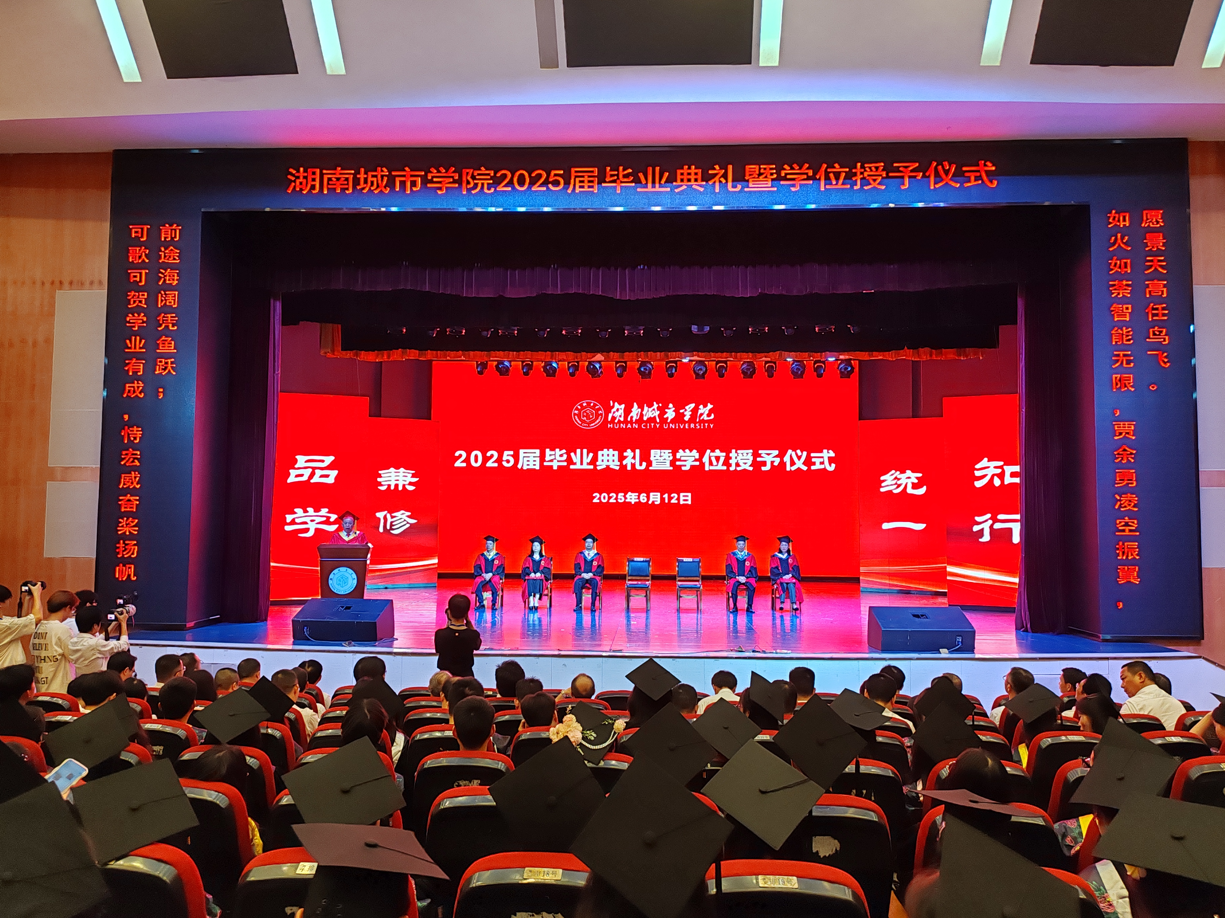 “当校歌的最后一个音符落下,你们在湖南城市学院的求学时光也画上了圆满的句号”……全体师生起立,齐唱湖南城市学院校歌。我校2025届毕业典礼暨学位授予仪式圆满落幕。