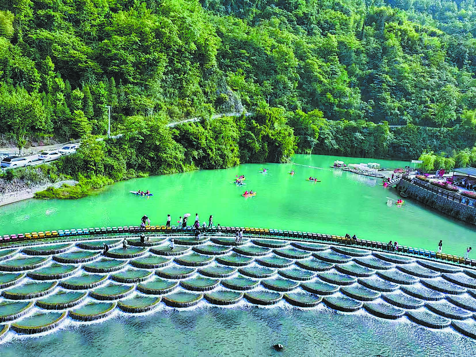 近日,恩施市白杨坪镇麂子渡村鱼鳞坝景区游人如织。(胡自丹 唐 和 摄)