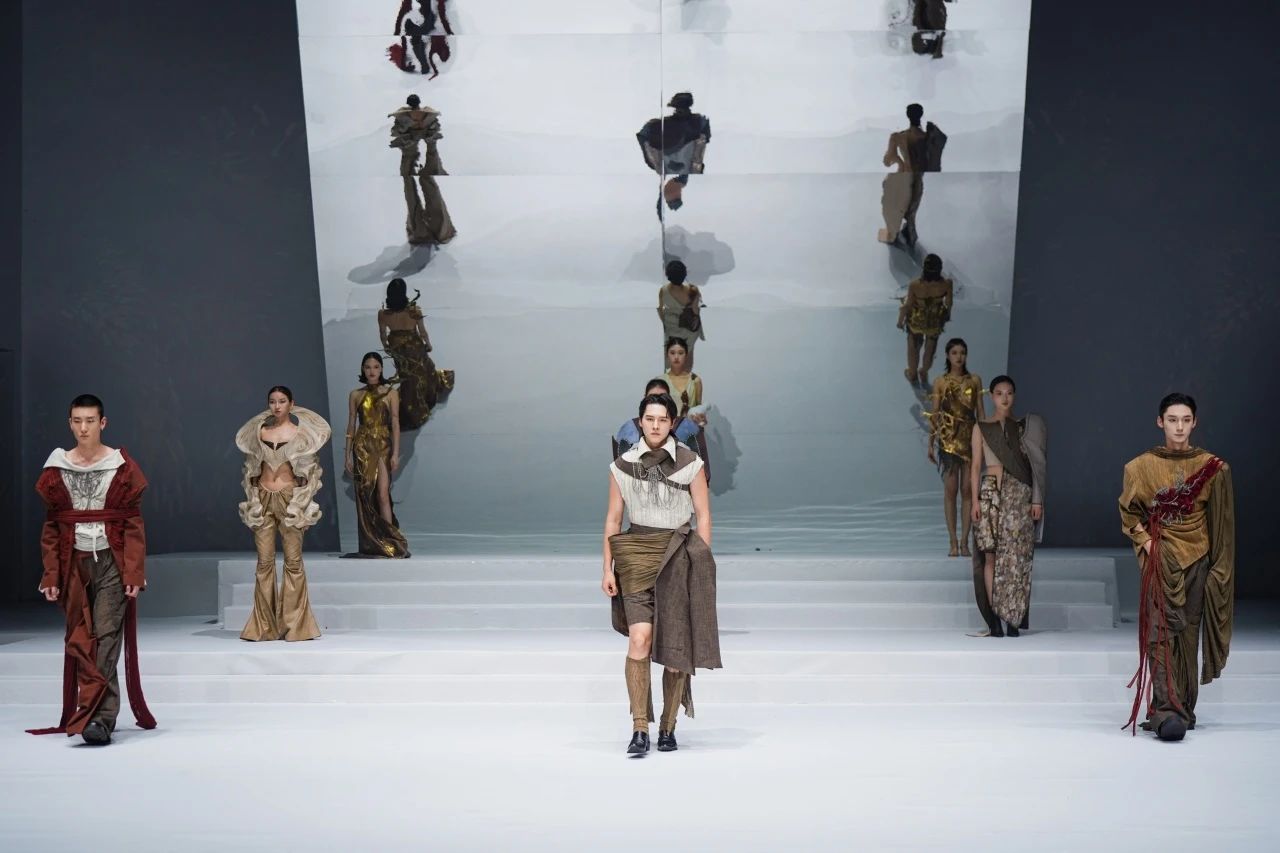 6月13日,2025年广州美术学院服装秀在广美大学城校区体育馆举行。本次服装秀集中呈现了41位毕业生的120套作品,总导演为工业设计学院陈嘉健副教授。