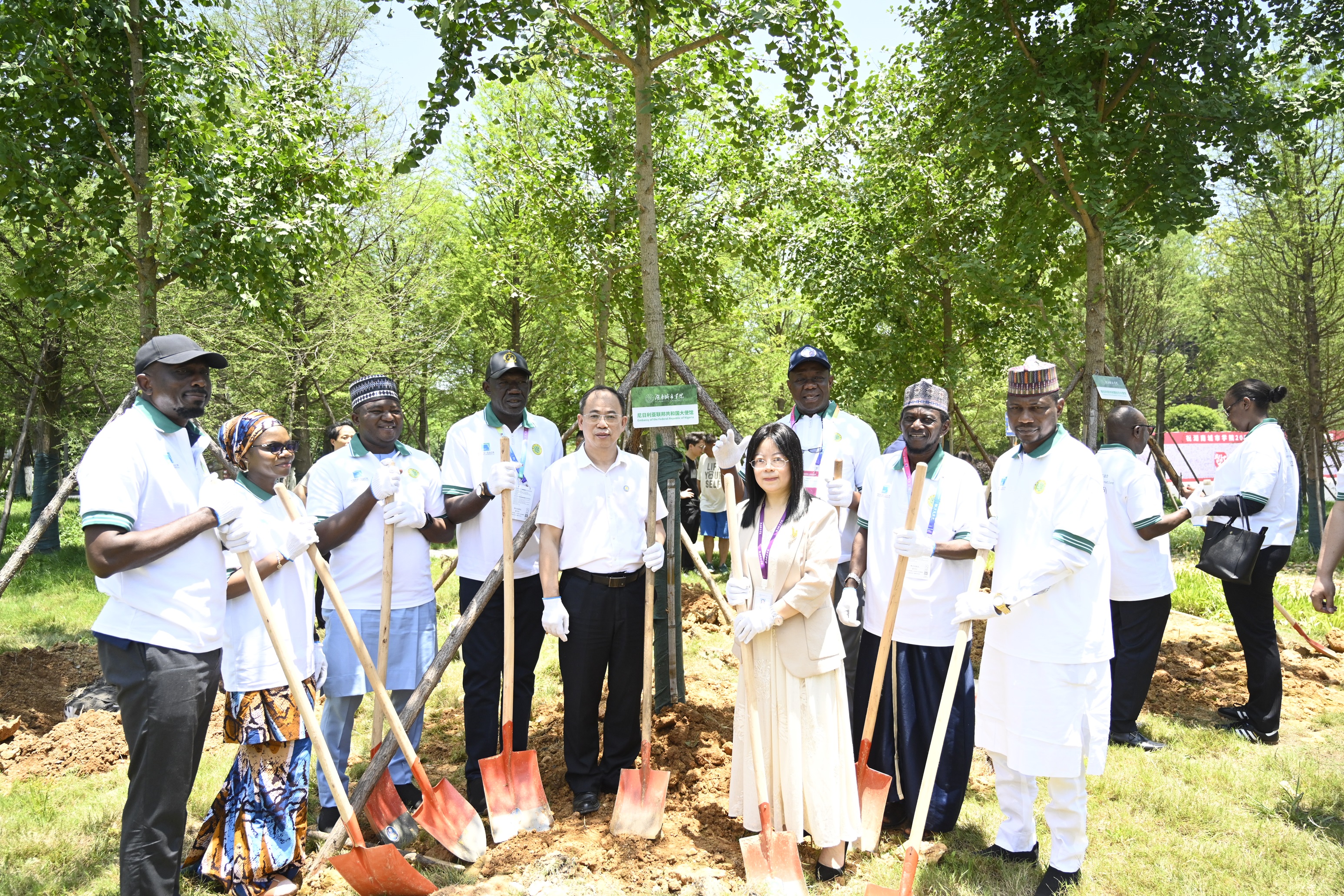 “共植友谊之树、文明之树、未来之树!”在中非文化园, 湖南城市学院校长何振、副校长徐姝与来宾共植友谊树,寓意中非情缘代代传承,中非友谊根深叶茂。