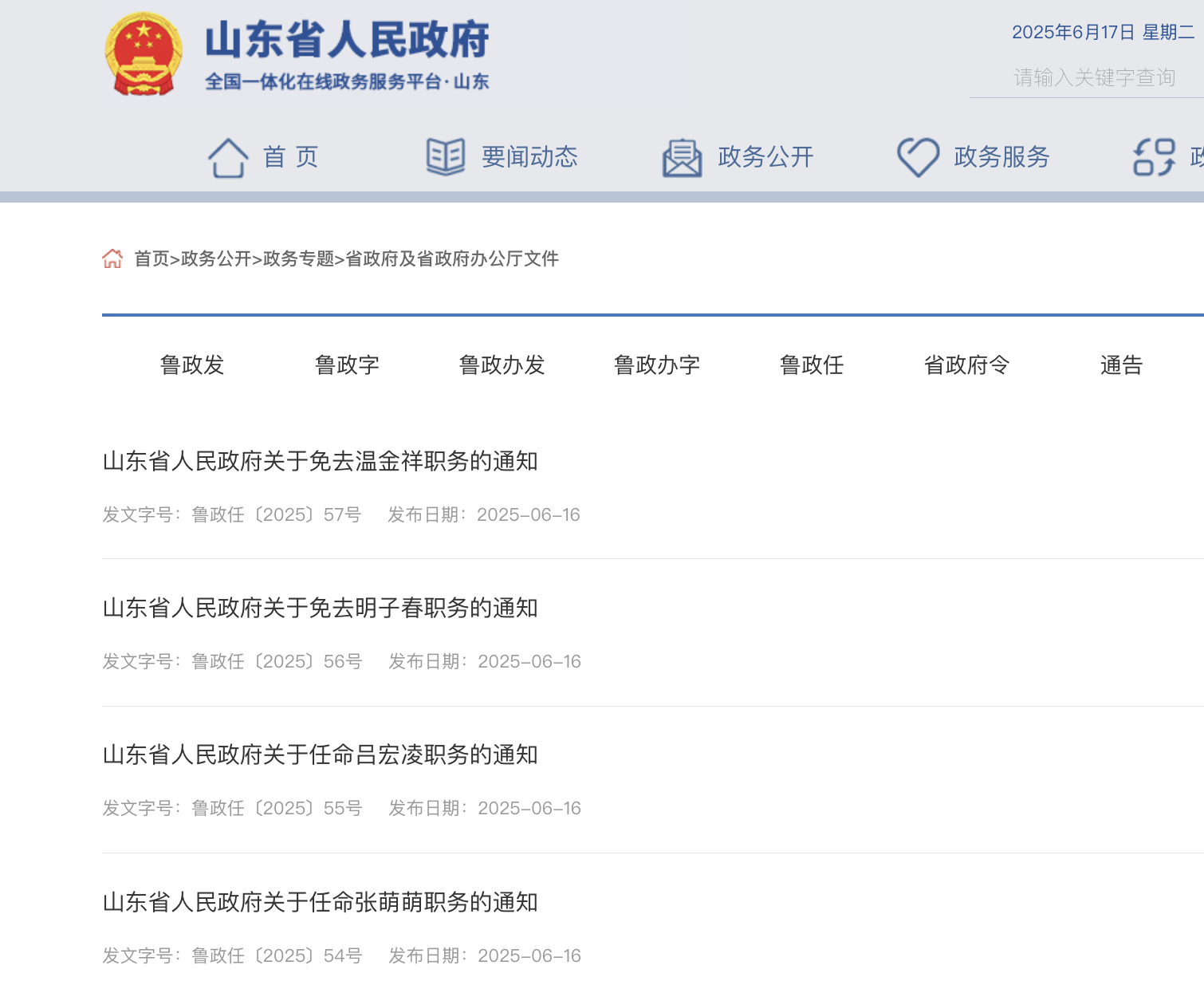 6月16日,山东省人民政府网站发布一批人事任免的通知。其中涉及临沂大学、青岛科技大学、济南大学、聊城大学、山东交通学院、山东石油化工学院、山东商业职业技术学院、山东城市服务职业学院、烟台职业学院等多所高校。